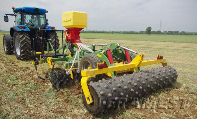 - REPTILL cultivator with water manager rubber roll and pneumatic seeder unit